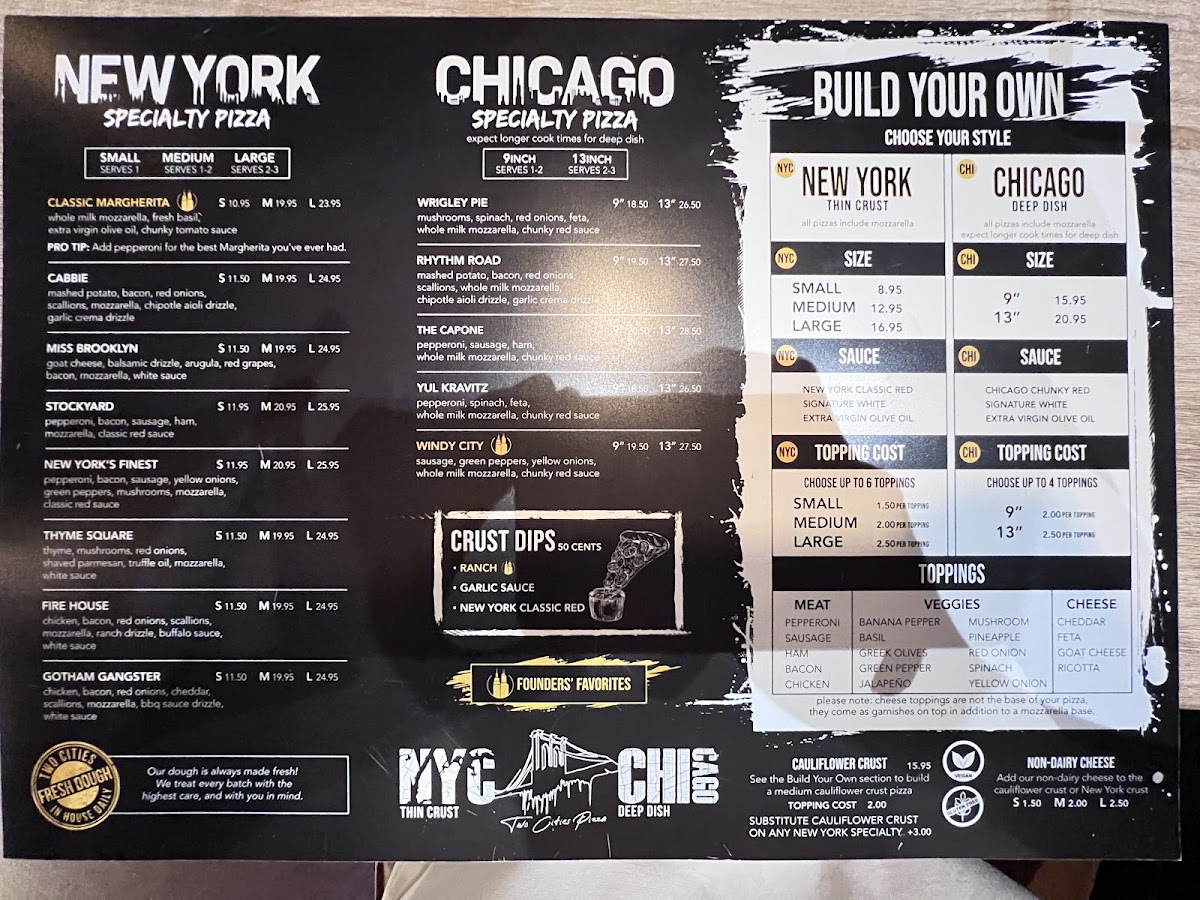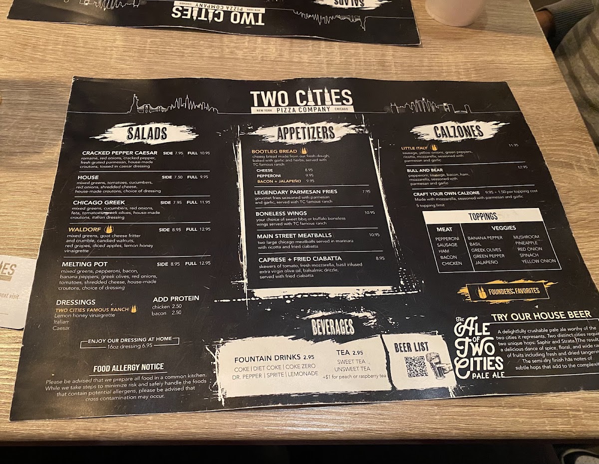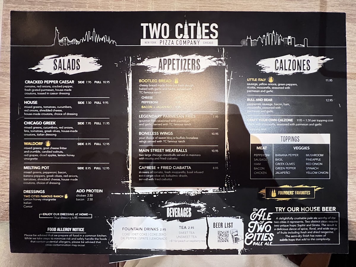Two Cities Pizza Co. Menu
