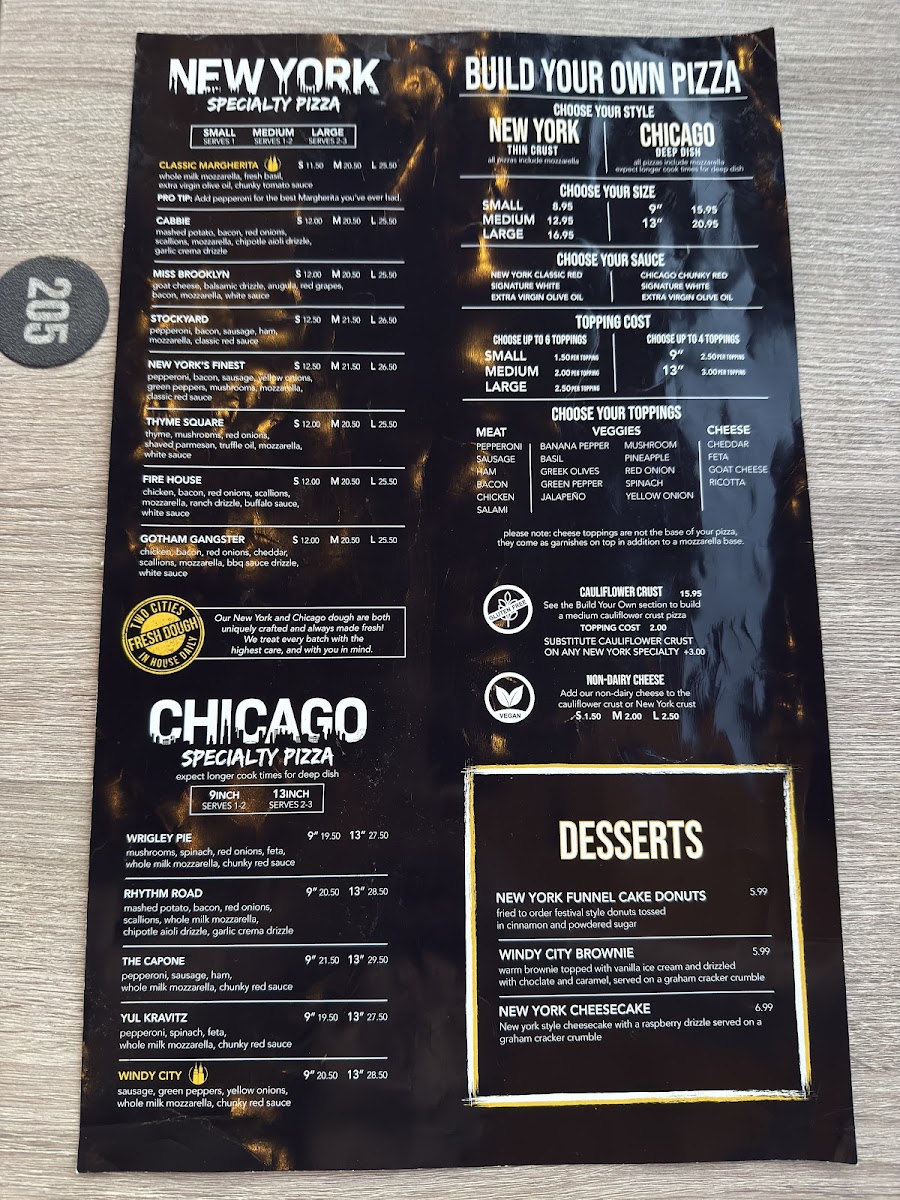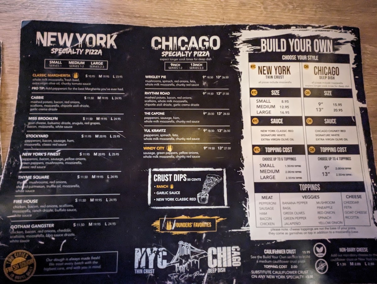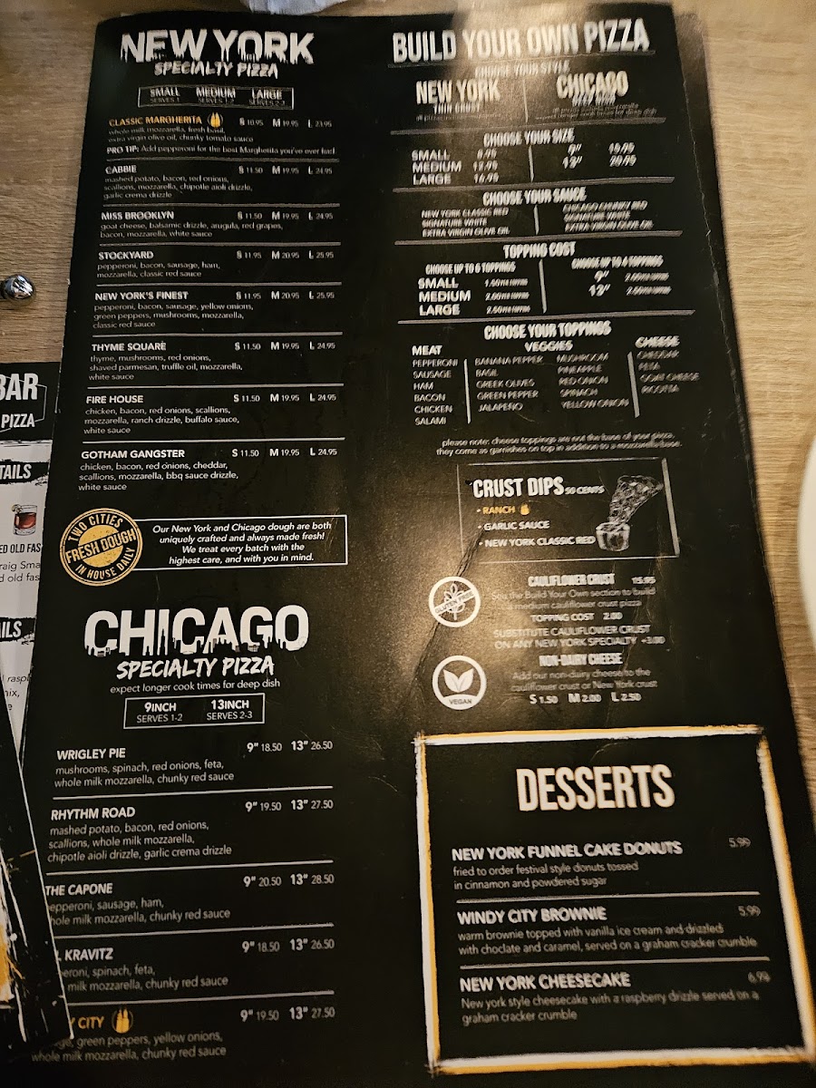 Two Cities Pizza Co. Menu